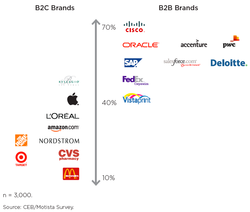 De acuerdo al estudio de CEB, (Corporate Executive Board por sus siglas en inglés), en asociación con Google, una mayor proporción de empresas de las llamadas, B2B, tienen una mayor fuerza de conexión con la marca en comparación con los modelos denominadas B2C.